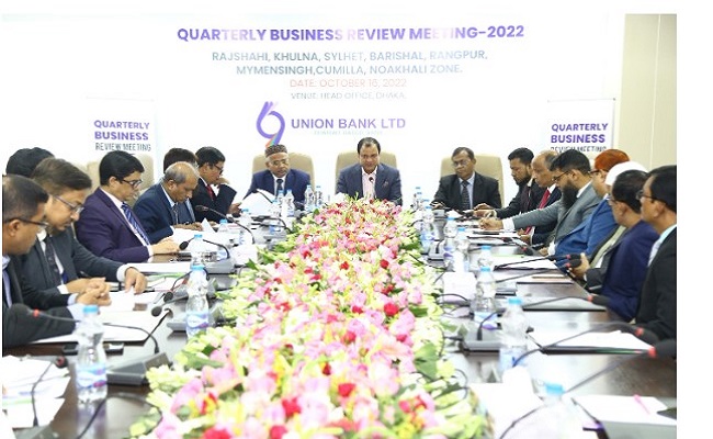 নিজস্ব প্রতিবেদকঃ ইউনিয়ন ব্যাংক লিমিটেড এর রাজশাহী, খুলনা, সিলেট, বরিশাল, রংপুর, ময়মনসিংহ, কুমিল্লা এবং নোয়াখালী অঞ্চলের ত্রৈমাসিক ব্যবসা পর্যালোচনা সভা-২০২২ ব্যাংকের প্রধান কার্যালয়, গুলশান-১, ঢাকায় অনুষ্ঠিত হয়। প্রধান অতিথি হিসেবে উপস্থিত থেকে ব্যবসা পর্যালোচনা সভা উদ্বোধন করেন ব্যাংকের ব্যবস্থাপনা পরিচালক ও সিইও এ. বি. এম. মোকাম্মেল হক চৌধুরী। বিশেষ অতিথি হিসেবে উপস্থিত ছিলেন উপ-ব্যবস্থাপনা পরিচালক মোঃ নজরুল ইসলাম এবং এসইভিপি গোলাম মোস্তফা। এছাড়াও উপস্থিত ছিলেন প্রধান কার্যালয়ের বিভাগীয় প্রধানগণ এবং রাজশাহী, খুলনা, সিলেট, বরিশাল, রংপুর, ময়মনসিংহ, কুমিল্লা এবং নোয়াখালী অঞ্চলের শাখা ব্যবস্থাপকবৃন্দ। প্রধান অতিথির বক্তব্যে ব্যবস্থাপনা পরিচালক ও সিইও এ. বি. এম. মোকাম্মেল হক চৌধুরী সমবেত সকলকে ত্রৈমাসিক ব্যবসায়িক সাফল্য তুলে ধরে অভিনন্দন জানান এবং কাঙ্খিত সেবা প্রদানের মাধ্যমে ২০২২ সালের ব্যবসায়িক লক্ষ্যমাত্রা অর্জনে সর্বাত্মক প্রচেষ্টা গ্রহণের পরামর্শ দেন।