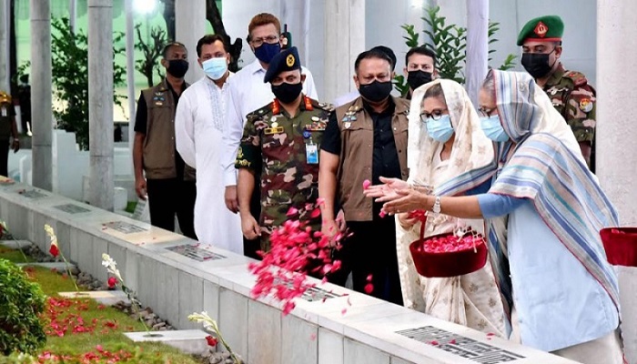 মঙ্গলবার (১৮ অক্টোবর) সকালে পুষ্পস্তবক অর্পণ করেন তিনি। পুষ্পস্তবক অর্পণ শেষে বঙ্গবন্ধুর এই দুই কন্যা কিছুক্ষণ নীরবে দাঁড়িয়ে থাকেন। পরে সেখানে সমাহিত স্বজনদের কবরে ফুলের পাপড়ি ছিটিয়ে দেন তারা।