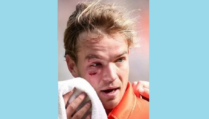 তখনই আভাস পাওয়া যায় গুরুতর চোটের। পরে হেলমেট খোলার পর দেখা যায় তার ডান চোখের নিচে কেটে গেছে। সঙ্গে সঙ্গে মাঠে ঢোকেন দলটির চিকিৎসকরা। চোটের অবস্থা খারাপ দেখে কিছুক্ষণ পর ডে লেডেকে নিয়ে মাঠ ছাড়েন তারা। পরে ম্যাচের এক পর্যায়ে টিভি ক্যামেরায় দেখা যায় ডাগ আউটে বসে আছেন তিনি। তার ডান চোখ ফুলে গেছে এবং কিছু অংশ কালোও হয়ে গেছে। তবে হাসি মুখেই সতীর্থদের সঙ্গে কথা বলতে দেখা যায় তাকে।