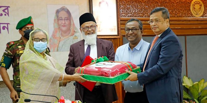 বৃহস্পতিবার (১০ নভেম্বর) প্রধানমন্ত্রীর কার্যালয়ে প্রধানমন্ত্রী শেখ হাসিনার হাতে নমুনা কম্বল তুলে দেন আইএফআইসি ব্যাংকের পরিচালক ও নির্বাহী কমিটির চেয়ারম্যান এ. আর. এম. নজমুস্ ছাকিব এবং ব্যাংকের ব্যবস্থাপনা পরিচালক ও প্রধান নির্বাহী শাহ এ সারওয়ার।