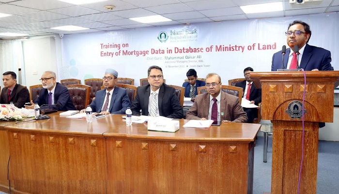 নিজস্ব প্রতিনিধিঃ ইসলামী ব্যাংক বাংলাদেশ লিমিটেডের উদ্যোগে ‘ভূমি মন্ত্রণালয়ের ডাটাবেজে বন্ধকী তথ্যের অন্তর্ভুক্তি’ বিষয়ক এক প্রশিক্ষণ কর্মসূচি বুধবার ইসলামী ব্যাংক টাওয়ারে অনুষ্ঠিত হয়।
