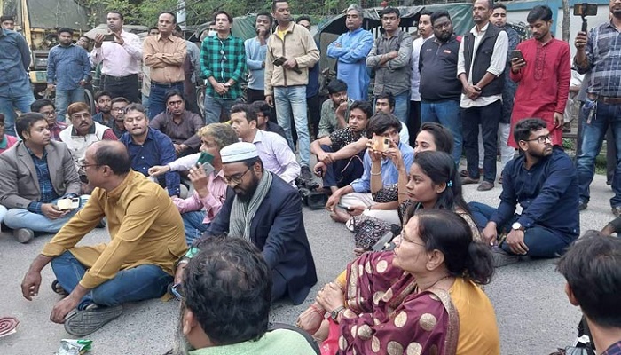 সাংবাদিকরা তখন হোটেল এক্সের সামনে অবস্থান নিয়ে অভিযুক্তদের আটকের দাবি জানালে পুলিশ দুজনকে থানায় নেয়। কিন্তু থানায় নেওয়ার পর আইনগত ব্যবস্থা নিতে গড়িমসি করা এবং উল্টো হোটেল এক্সের পক্ষ নিয়ে কথা বলতে শুরু করেন থানার ভারপ্রাপ্ত কর্মকর্তা (ওসি) এএসএম সিদ্দিকুর রহমান।