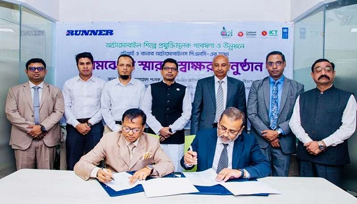 দেশে অত্যাধুনিক প্রযুক্তিসম্পন্ন অটোমোবাইল শিল্পের গবেষণা ও উন্নয়ন এবং পরিবেশবান্ধব যানবাহন তৈরিতে যৌথভাবে কাজ করবে এটুআই ও রানার অটোমোবাইলস পিএলসি।