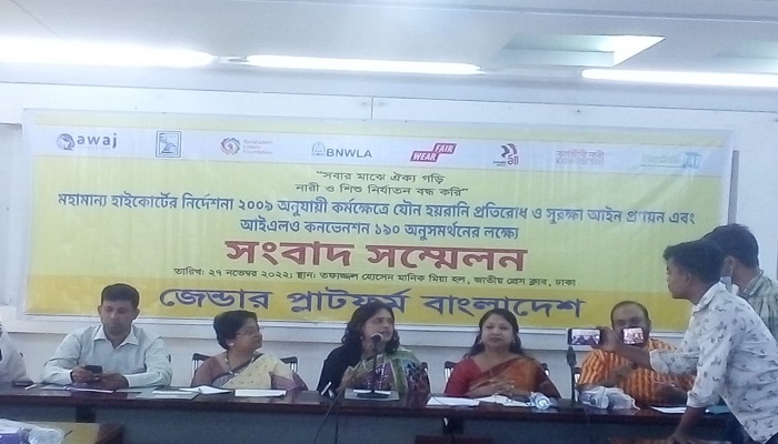 নিজস্ব প্রতিনিধিঃ কর্মক্ষেত্রে ও শিক্ষা প্রতিষ্ঠানে যৌন হয়রানি প্রতিরোধ ও সুরক্ষা আইন প্রণয়ন ও বাস্তবায়ন, কর্মক্ষেত্রে যৌন হয়রানি প্রতিরোধ কমিটি গঠন সংক্রান্ত হাইকোর্টের নির্দেশনা বাস্তবায়ন এবং আইএলও কনভেনশন ১৯০ অনুসমর্থন।
