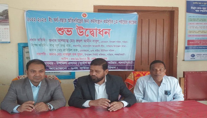 পাটগ্রাম উপজেলা প্রকল্প বাস্তবায়ন কর্মকর্তা উত্তম কুমার নন্দীর সার্বিক ব্যবস্থাপনায় এসময় প্রধান অতিথি হিসেবে উপস্থিত ছিলেন উপজেলা পরিষদ চেয়ারম্যান রুহুল আমিন বাবুল।