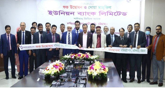 নিজস্ব প্রতিবেদকঃ শরী‘আহ ভিত্তিক আধুনিক প্রযুক্তি নির্ভর ব্যাংকিং সেবা প্রদানের প্রত্যয়ে চট্টগ্রামে ইউনিয়ন ব্যাংক লিমিটেড এর নাজিরহাট শাখা শুভ উদ্বোধন করা হয়েছে। প্রধান অতিথি হিসেবে উপস্থিত থেকে ব্যাংকের প্রধান কার্যালয়, ঢাকা থেকে ভিডিও কনফারেন্সের মাধ্যমে নাজিরহাট শাখা উদ্বোধন করেন ব্যাংকের ব্যবস্থাপনা পরিচালক ও সিইও এ. বি. এম. মোকাম্মেল হক চৌধুরী। অনুষ্ঠানে বিশেষ অতিথি হিসেবে উপস্থিত ছিলেন ইউনিয়ন ব্যাংকের অতিরিক্ত ব্যবস্থাপনা পরিচালক মোঃ হাবিবুর রহমান, উপ-ব্যবস্থাপনা পরিচালক মোঃ নজরুল ইসলাম এবং নাজিরহাট পৌরসভার প্যানেল মেয়র মোহাম্মদ আলী। এছাড়াও আরো উপস্থিত ছিলেন ব্যাংকের প্রধান কার্যালয়ের উর্ধ্বতন নির্বাহীবৃন্দ, চট্টগ্রাম অঞ্চলের শাখা ব্যবস্থাপক ও উপ-শাখা ইনচার্জবৃন্দ এবং স্থানীয় গণ্যমান্য ব্যক্তিবর্গ। এ উপলক্ষে এক দোয়া মাহফিলের আয়োজন করা হয়।