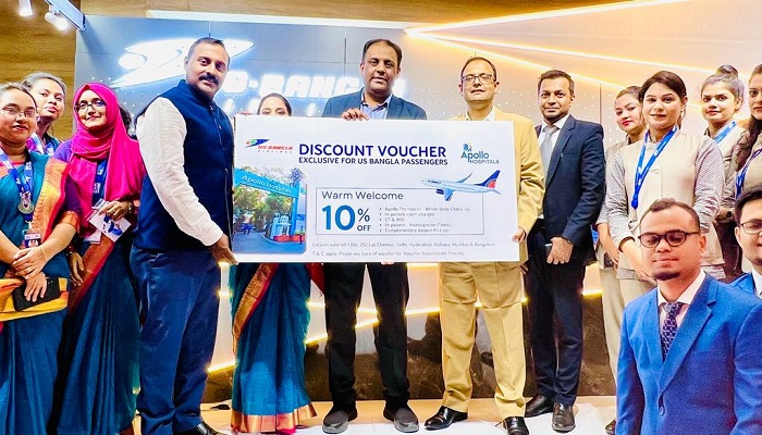 ইউএস বাংলা এয়ারলাইন্সের সাথে সংঘবদ্ধতা সম্পর্কে বলতে গিয়ে অ্যাপোলো হসপিটালের গ্রুপ প্রেসিডেন্ট ডাঃ কে. হরিপ্রসাদ বলেছেন যে, অ্যাপোলো হসপিটাল গ্রুপ ঢাকায় ট্রাভেল অ্যান্ড ট্যুরিজম এক্সপো ২০২২-এ অংশগ্রহণ করতে পেরে এবং ইউএস বাংলা এয়ারলাইন্সের গ্রাহকদের জন্য একটি বিশেষ ডিসকাউন্ট ভাউচার