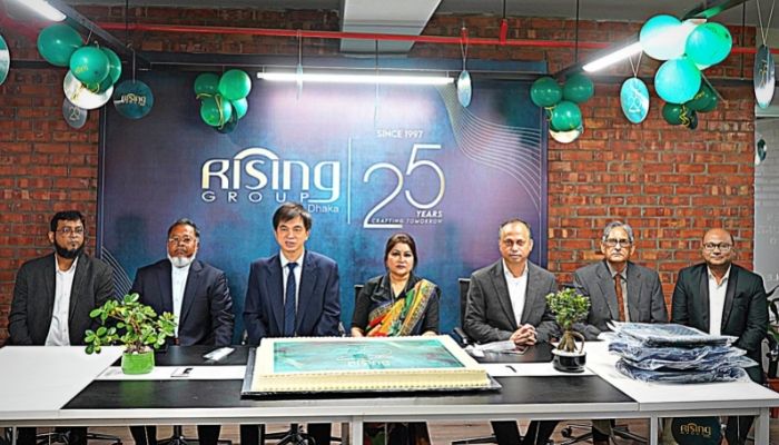 নিজস্ব প্রতিবেদকঃ রাইজিং গ্রুপ - বাংলাদেশের একটি বৃহৎ সমন্বিত টেক্সটাইল এবং পোশাক প্রস্তুতকারক প্রতিষ্ঠান তার ২৫তম বর্ষপূর্তি উদযাপন করেছে, সেখানে এর ব্যবস্থাপনা পরিচালক এবং কর্মচারীরা উপস্থিত ছিলেন। ১৯৯৭ সালের ৫ ডিসেম্বর রাজধানীর মিরপুর এলাকায় একটি ছোট ভাড়া করা ভবনে মাত্র ১২০টি সেলাই মেশিন নিয়ে যাত্রা শুরু করে হাটি হাটি পা পা করে বেড়ে ওঠে রাইজিং গ্রুপ। বর্তমানে মিরপুর, আশুলিয়া, ধামরাই, গাজীপুর এবং মানিকগঞ্জে মোট ১৩টি সহ প্রতিষ্ঠানে নিজস্ব কমপ্লেক্সে প্রায় ১৪ হাজার কর্মীর পরিবার এই রাইজিং গ্রুপ। প্রতিষ্ঠানের প্রতি কর্মীদের দৃঢ় প্রতিশ্রুতি, দূরদর্শী চিন্তা, বলিষ্ঠ নেতৃত্ব এবং এর মালিক জনাব মাহামুদ হাসান খান (বাবু) এর সঠিক নির্দেশনাই কোম্পানির সাফল্যের মূল মন্ত্র।