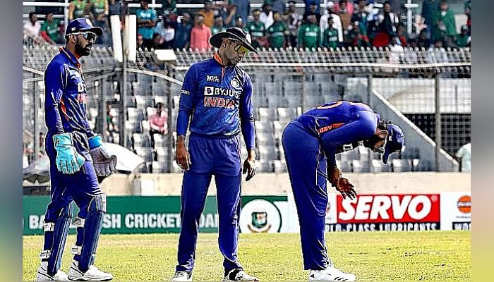 বাংলাদেশের বিপক্ষে দ্বিতীয় ওয়ানডেতে দ্বিতীয় ওভারে এনামুল হকের ক্যাচ ধরার চেষ্টা করেছিলেন রোহিত। ক্যাচটি হাতছাড়া হলেও আঙুলে চোট পান ভারতীয় এই ওপেনার। এরপরই মাঠের বাইরে চলে যান তিনি। রোহিত না থাকায় ভারতকে মাঠে নেতৃত্ব দিচ্ছেন লোকেশ রাহুল। এই ম্যাচে দুই পরিবর্তন নিয়ে মাঠে নেমেছে ভারত।