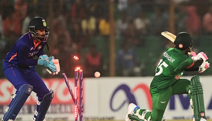 ভারতের দেয়া ৪১০ রানের পাহাড় টপকাতে অসাধ্য সাধন করতে হতো বাংলাদেশকে। রান তাড়ায় শুরুটা অবশ্য খারাপ হয়নি। প্রথম চার ওভারে দুই ওপেনার সংগ্রহ করেছিলেন ৩৩ রান। তবে এরপর ভারতীয় অধিনায়ক কৌশলে বদল এনেই সাফল্য পেলেন। পেসারদের সহজেই খেলছেন দেখেই হয়তো স্পিন আনেন রাহুল। প্রথম বলেই মেলেই উইকেট।