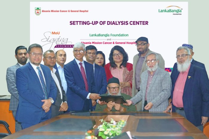 লংকাবাংলা ফাউন্ডেশনের উদ্যোগে এবং আহ্ছানিয়া মিশন ক্যান্সার এন্ড জেনারেল হাসপাতাল এর সহযোগিতায় কিডনি রোগের চিকিৎসার্থে হাসপাতালটিতে একটি আধুনিক মানসম্পন্ন ডায়ালাইসিস সেন্টার স্থাপন করা হবে এবং স্থাপনা প্রতিষ্ঠাপনের যাবতীয় আর্থিক সহায়তা প্রদান করবে লংকাবাংলা ফাউন্ডেশন। উল্লেখ্য যে, চুক্তি স্বাক্ষরের প্রেক্ষিতে এই ডায়ালাইসিস সেন্টার প্রতিষ্ঠায় লংকাবাংলা ফাউন্ডেশন হাসপাতালটিকে সর্বমোট ১ কোটি ২৯ লক্ষ টাকা অনুদান প্রদান করবে।