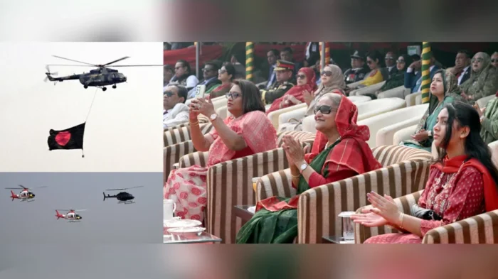 কন্যা ও নাতনিকে নিয়ে মহান বিজয় দিবসের কুচকাওয়াজ উপভোগ করেছেন প্রধানমন্ত্রী শেখ হাসিনা। শুক্রবার (১৬ ডিসেম্বর) ৫২তম বিজয় দিবস উপলক্ষে জাতীয় প্যারেড চত্বরে কুচকাওয়াজ অনুষ্ঠিত হয়। রাষ্ট্রপতি মো. আবদুল হামিদ প্রধান অতিথি হিসেবে অভিবাদন গ্রহণ ও কুচকাওয়াজ পরিদর্শন করেন।