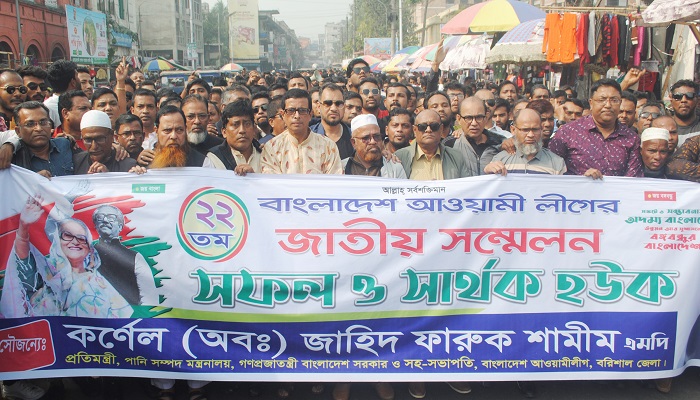 নিজস্ব প্রতিনিধিঃ বাংলাদেশ আওয়ামী লীগের কেন্দ্রীয় (২২তম) সম্মেলন সফল ও সার্থক করার শুভেচ্ছা জানিয়ে পানি সম্পদ মন্ত্রালয়ের প্রতিমন্ত্রী ও বরিশাল জেলা আওয়ামী লীগের সহ-সভাপতি কর্নেল (অবঃ) জাহিদ ফারুক শামীম এমপি’র সমর্থনে আওয়ামী লীগের এক অংশ নগরীতে বিশাল-শো ডাউন র্যালি করেছে।