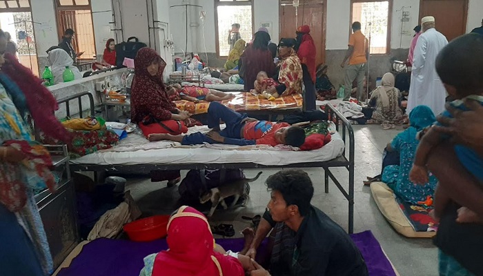 সরেজমিনে গিয়ে হাসপাতালের শিশু ওয়ার্ডে দেখা যায়, ওয়ার্ডটি রোগীতে পরিপূর্ণ। শয্যা না পেয়ে মেঝেতে বিছানা পেতে রাখা হয়েছে বেশিরভাগ শিশুকে। রোগীর চাপে নার্স ও চিকিৎসকরা সেবা দিতে হিমশিম খাচ্ছেন।