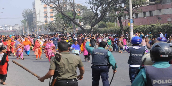 গাজীপুরের টঙ্গীতে একটি পোশাক কারখানায় শ্রমিকরা বিক্ষোভ করছেন।এ সময় শ্রমিকদের সঙ্গে পুলিশের সংঘর্ষ হয়। পরিস্থিতি স্বাভাবিক করতে পুলিশের রাবার বুলেট ও টিয়ারশেল নিক্ষেপ করতে হয় বলে জানা গেছে। এতে পুলিশসহ প্রায় ২০ জন শ্রমিক আহত হয়েছেন।