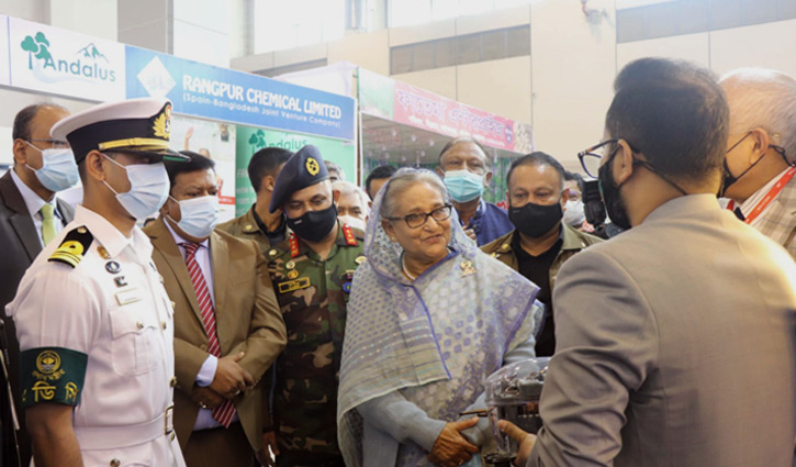 ওয়ালটন প্যাভিলিয়ন পরিদর্শনকালে প্রধানমন্ত্রীকে বাংলাদেশের ইলেকট্রনিক্স ও প্রযুক্তি পণ্য উৎপাদন শিল্প খাত সম্পর্কে অবহিত করেন ওয়ালটন হাই-টেক ইন্ডাস্ট্রিজ পিএলসি’র ভাইস চেয়ারম্যান এস এম শামছুল আলম, পরিচালক এস এম রেজাউল আলম এবং ম্যানেজিং ডিরেক্টর ও সিইও গোলাম মুর্শেদ।