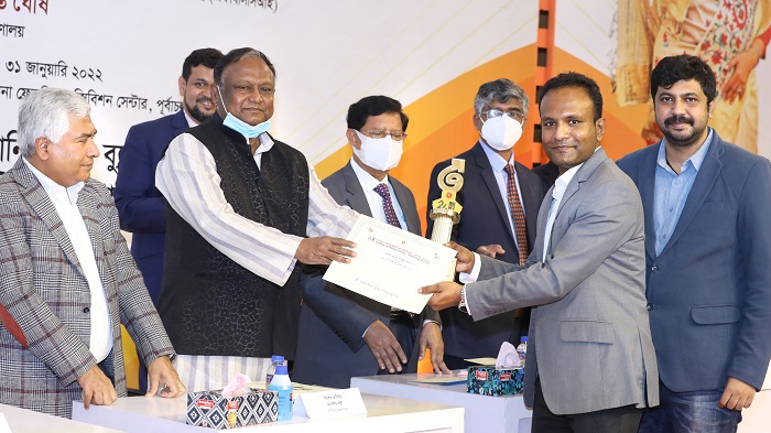 অনুষ্ঠানের প্রধান অতিথি পাট ও বস্ত্র মন্ত্রী গোলাম দস্তগীর গাজীর হাত থেকে পুরস্কারের ক্রেস্ট গ্রহণ করেন ওয়ালটন রিসার্চ অ্যান্ড ইনোভেশন সেন্টারের প্রধান প্রকৌশলী তাপস কুমার মজুমদার ও ওয়ালটন রেফ্রিজারেটরের চিফ বিজনেস অফিসার প্রকৌশলী আনিসুর রহমান মল্লিক।