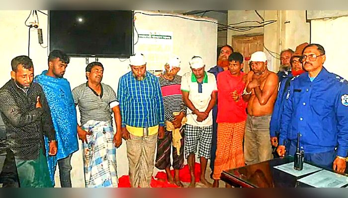 গ্রেফতারকৃতরা হলেন মুন্সিগঞ্জ জেলার শ্রীনগর থানা এলাকার কাশেম খানের ছেলে ময়না খান (৩০), একই জেলার কামারগাও গ্রামের মোজ্জামেল হকের ছেলে মো. বাবুল হক (৫৫), মাদারীপুর জেলার শিবচর এলাকার শাহ জাহানের ছেলে মো. আরাফাত হাওলাদার (৩০), ফরিদপুর জেলার সদরপুর এলাকার সুমন বেপারীর ছেলে মো. হারুন বেপারী (৫৫), একই জেলার মৃত তানিজ বেপারীর ছেলে হৃদয় খান (২১), ঢাকা জেলার দোহার এলাকার রাসেল বেপারীর ছেলে শাহ আলম (৫০), ফরিদপুর জেলার মদুকালী এলাকার মৃত আব্বাস শেখের ছেলে মো. শাহ জাহান (৫২), মাদারীপুর জেলাট শিবচর এলাকার জুয়েল হাওলাদারের ছেলে মো. সোজাত হাওলাদার (৪০)।