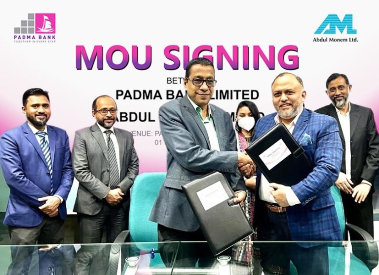 ব্যবসা সম্প্রসারণের জন্য আব্দুল মোনেম লিমিটেড ও পদ্মা ব্যাংকের মধ্যে এক সমঝোতা চুক্তি স্বাক্ষরিত হয়েছে। এই চুক্তির আওতায় দুই প্রতিষ্ঠানের মধ্যে ফরেন এক্সচেঞ্জ, ফান্ডেড-ননফান্ডেড, লোন-সহ বিভিন্ন রকম সেবা রয়েছে।