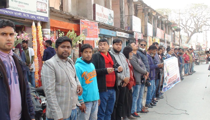 অন্যদিকে, প্রেসক্লাব গাইবান্ধার সহ-সভাপতি রবিন সেনের নামে জেলা পরিষদের চেয়ারম্যান আতাউর রহমানের জামাতার মানহানির মামলারও তীব্র প্রতিবাদ ও নিন্দা জানানো হয় মানববন্ধন থেকে।