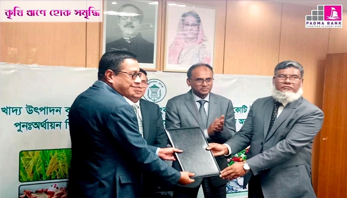 দেশের খাদ্য নিরাপত্তা নিশ্চিতে কৃষি খাতে উৎপাদন বৃদ্ধিতে ৪ শতাংশ সুদে ঋণ দেবে পদ্মা ব্যাংক লিমিটেড। বাংলাদেশ ব্যাংকের নিজস্ব অর্থায়নে গঠিত “দেশের খাদ্য নিরাপত্তা নিশ্চিত করার লক্ষ্যে কৃষি খাতের জন্য ৫ হাজার কোটি টাকার পুনঃঅর্থায়ন স্কিম” শীর্ষক তহবিলের আওতায় এই ঋণ দেয়া হবে। সহজ শর্তে এই ঋণ বিতরণে বাংলাদেশ ব্যাংকের সঙ্গে অংশগ্রহণমূলক চুক্তি স্বাক্ষর করেছে পদ্মা ব্যাংক।