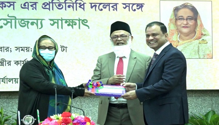 অনুষ্ঠানে মাননীয় প্রধানমন্ত্রী শেখ হাসিনার হাতে আর্থিক সহায়তার চেক হস্তান্তর করেন ব্যাংকের ব্যবস্থাপনা পরিচালক ও সিইও এ. বি. এম মোকাম্মেল হক চৌধুরী।