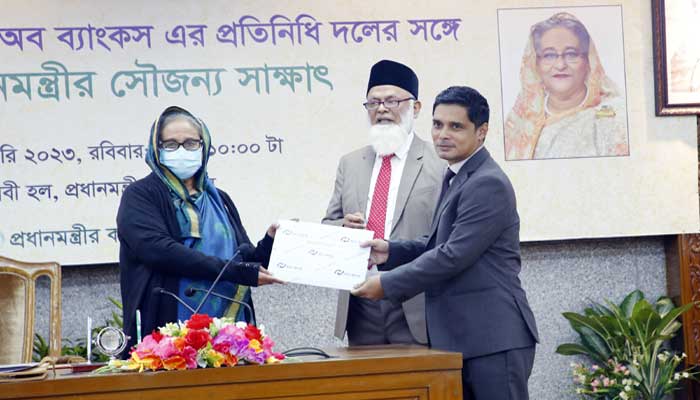রবিবার (১৫ জানুয়ারী ২০২৩) প্রধানমন্ত্রীর কার্যালয়ে আয়োজিত এক অনুষ্ঠানে ব্যাংক এর চেয়ারম্যান মোঃ আবুল বাশার মাননীয় প্রধানমন্ত্রী শেখ হাসিনার হাতে অনুদানের পে-অর্ডার হস্তান্তর করেন।