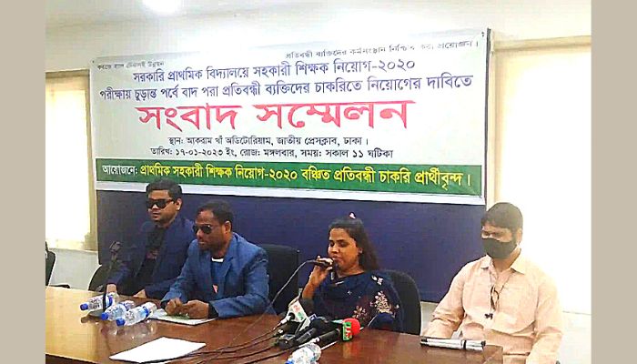 নিজস্ব প্রতিনিধিঃ সরকারি প্রাথমিক বিদ্যালয়ের ২০২০ সালের সহকারী শিক্ষক নিয়োগ লিখিত পরীক্ষায় উত্তীর্ণ হয়েও চূড়ান্ত ফলাফলে বাদ পড়া প্রতিবন্ধী চাকরিপ্রার্থীগণ আজ জাতীয় প্রেসক্লাবে সংবাদ সম্মেলন করেছে। সেখানে প্রতিবন্ধী ব্যক্তিরা অবিলম্বে সরকারি প্রাথমিক সহকারী শিক্ষক নিয়োগের চূড়ান্ত তালিকায় বাদ পড়া প্রতিবন্ধী ব্যক্তিদের চলমান নিয়োগ প্রক্রিয়ায় যুক্ত করার জন্য জোর দাবি জানায়। তারা আরো জানায় যে এভাবে প্রতিবন্ধিতার সাথে সংগ্রাম করে দেশের বিভিন্ন স্বনামধন্য শিক্ষা প্রতিষ্ঠান হতে উচ্চ শিক্ষা অর্জন করেও বিশেষ কোটা সুবিধা না পেয়ে ক্রমাগতভাবে প্রতিবন্ধী মানুষরা যোগ্যতা থাকা সত্ত্বেও চাকরি বঞ্চিত হতে থাকলে আগামী প্রজন্ম হতাশাগ্রস্থ হয়ে শিক্ষা বিমুখ হবে। ফলে দেশে প্রতিবন্ধী ভিক্ষুকের সংখ্যা বৃদ্ধি পাবে এতে সর্বকালের শ্রেষ্ট বাঙালি বঙ্গবন্ধুর কল্পিত মাননীয় প্রধানমন্ত্রীর ডিজিটাল সোনার বাংলা গড়ার প্রচেষ্টা ব্যর্থ হবে।