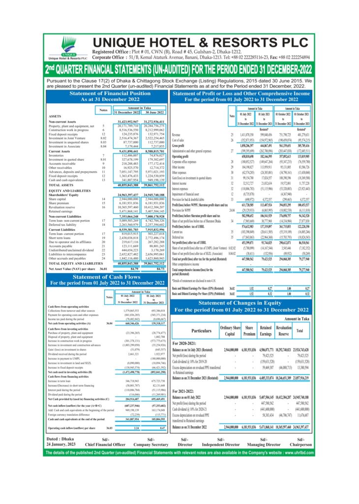 2nd Quarter un audited Financial Statement for the period ended 31 December 2022