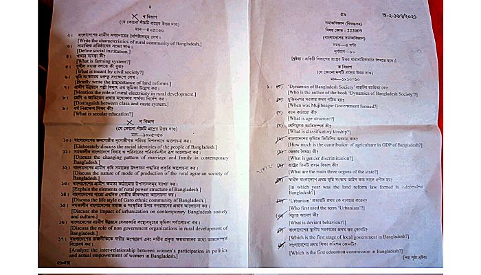 রবিবার (২৯ জানুয়ারি) বাংলাদেশের সমাজবিজ্ঞান এবং বাংলাদেশের সমাজ ও সংস্কৃতি দুইটি বিষয়ে পরীক্ষা ছিল। একই প্রশ্নপত্রে দুটি বিষয়ের প্রশ্ন দেখা যায়।