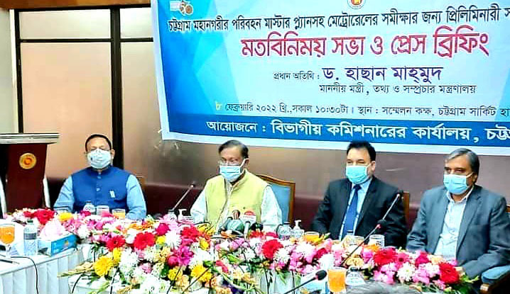 মঙ্গলবার (৮ ফেব্রুয়ারি) দুপুরে চট্টগ্রাম সার্কিট হাউসের সম্মেলন কক্ষে চট্টগ্রাম নগরের পরিবহন মাস্টার প্ল্যানসহ মেট্রোরেলের সমীক্ষার জন্য প্রিলিমিনারি সার্ভে কাজ সংক্রান্ত মতবিনিময় সভা ও প্রেস ব্রিফিংয়ে তথ্য ও সম্প্রচার মন্ত্রী এসব কথা বলেন।