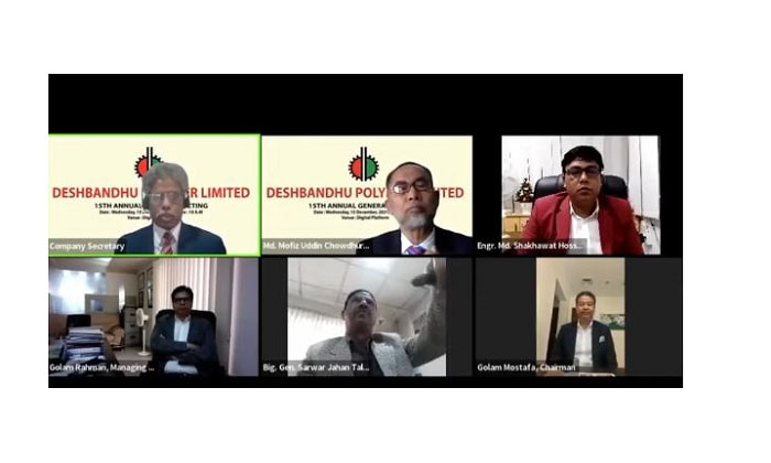 পুঁজিবাজারের তালিকাভুক্ত প্রযুক্তিখাতের কোম্পানি দেশবন্ধু পলিমার লিমিটেডের ১৫তম বার্ষিক সাধারণ সভা (এজিএম) গতকাল (১৫-১২-২০২১) বুধবার ডিজিটাল প্লাটফর্মে অনুষ্ঠিত হয়েছে। সভায় বিনিয়োগকারীদের জন্য পাঁচ শতাংশ নগদ লভ্যাংশ অনুমোদন করা হয়।