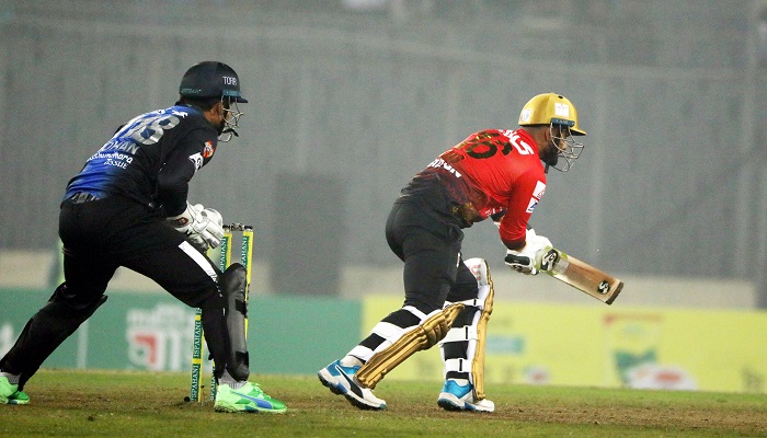 জাকির আলি ২৩ বলে ৩৪ রান করে আউট হলেও, খুশদিল ২০ বলে অপরাজিত ছিলেন ৪০ রানে। ২ চারের বিপরীতে তিনি হাঁকিয়েছেন ৩টি ছক্কা। ইনিংসের শেষ বলে রাসেল ব্যাটিংয়ে থাকলেও ব্যাটে বল লাগাতে পারেননি এই ক্যারিবীয়।