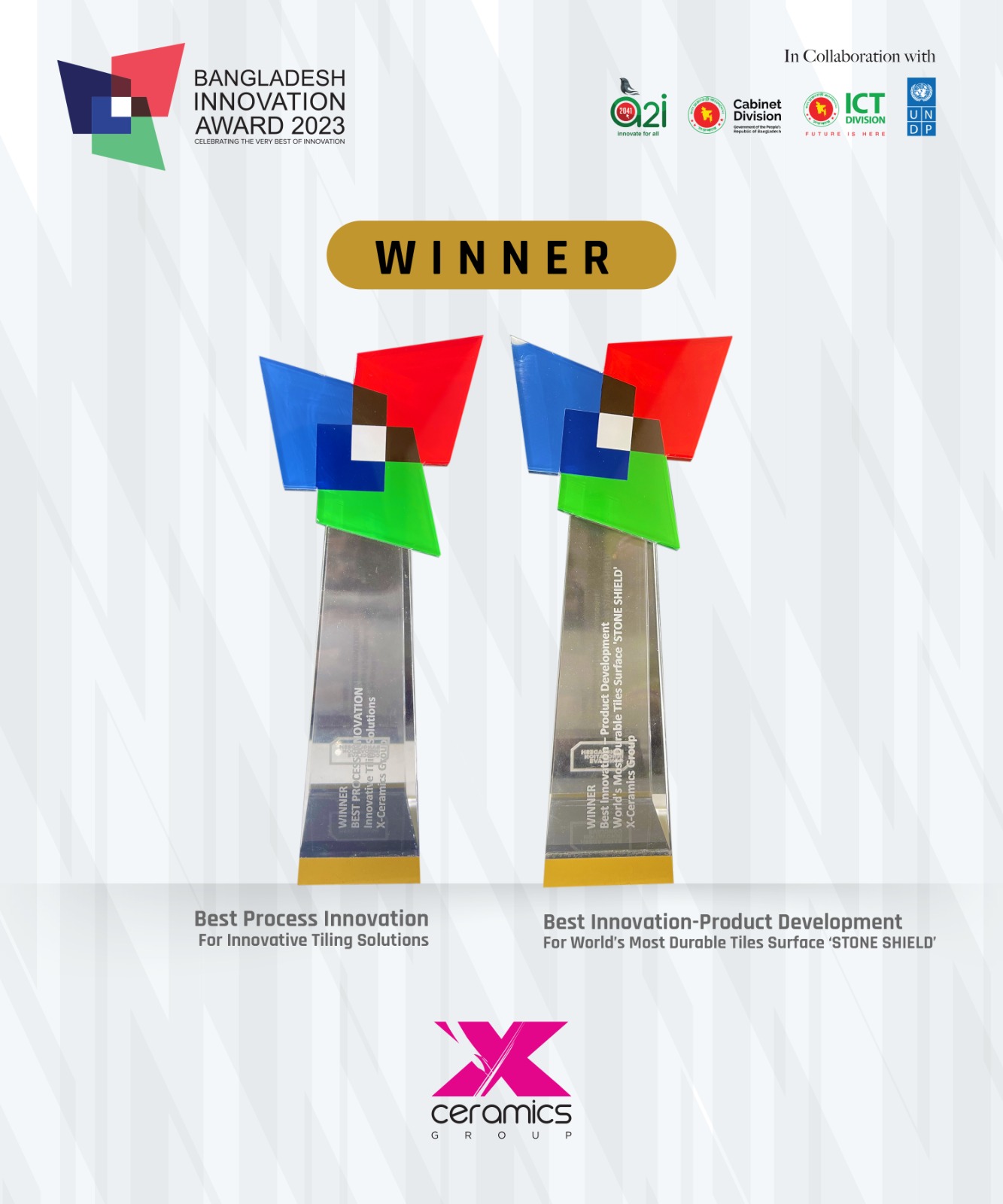 বিশ্বের সবচেয়ে টেকসই টাইলস সারফেস ‘স্টোন শিল্ড’ উদ্ভাবন করায় সেরা উদ্ভাবন হিসেবে পুরষ্কার লাভ করে এবং উদ্ভাবনী টাইলিং সলিউশনের জন্য সেরা প্রক্রিয়া উদ্ভাবক হিসেবে পুরষ্কার পায়। প্রক্রিয়া উদ্ভাবকের মধ্যে রয়েছে স্টোন শিল্ড টাইলস, জার্মি-প্রুফ টাইলস, টেম্প কন্ট্রোল টাইলস, অ্যান্টি-স্লিপ টাইলস।