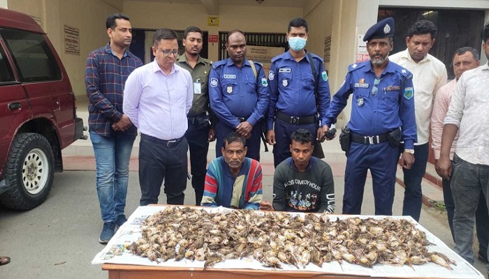 আটক পাখি শিকারিরা হলেন: নাটোরের নলডাঙ্গা উপজেলার মদনহাট গ্রামের মৃত সোবহান মোল্লার ছেলে আবু বকর সিদ্দিক (৫৫) ও তার ছেলে ফিরোজ হোসেন (৩২)।