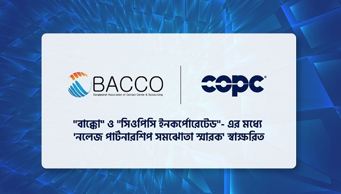 গত জানুয়ারিতে স্বাক্ষরিত এ সমঝোতা স্মারক অনুযায়ী, এখন থেকে বাংলাদেশের বিপিও এবং আইটি-আইটিইএস খাতের ‘কাস্টমার এক্সপেরিয়েন্স’ অর্থাৎ গ্রাহক অভিজ্ঞতার সামগ্রিক উন্নয়নের লক্ষ্যে ‘নলেজ পার্টনার’ হিসেবে বাক্কোর সঙ্গে যৌথভাবে কাজ করবে ‘সিওপিসি ইনকর্পোরেটেড’।