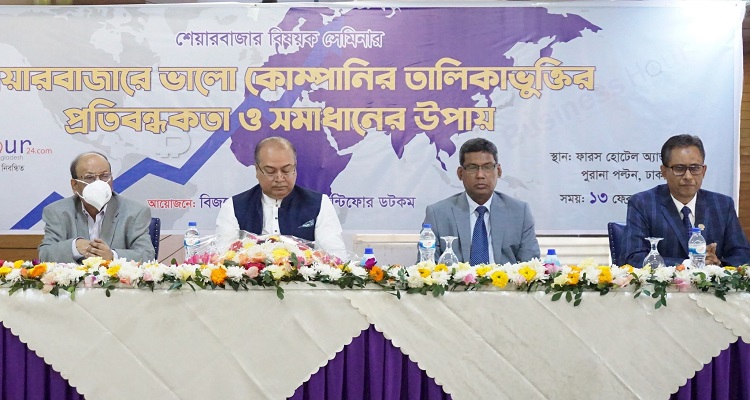রোববার (১৩ ফেব্রুয়ারি) রাজধানীর একটি হোটেলে ‘পুঁজিবাজারে ভালো কোম্পানির তালিকাভুক্তির প্রতিবন্ধকতা ও সমাধানের উপায়’ শীর্ষক সেমিনারে বিশেষ অতিথির বক্তব্যে তিনি এসব কথা বলেন। সেমিনারটির আয়োজন করে অনলাইন বিজনেস নিউজপোর্টাল বিজনেস আওয়ার২৪.কম।