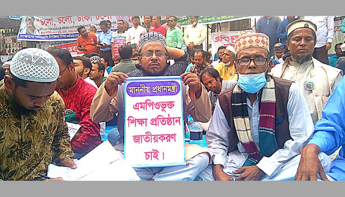 নিজস্ব প্রতিবেদকঃ এমপিভুক্ত শিক্ষক-কর্মচারী জাতীয়করণ প্রত্যাশী মহাজোট গত ২৪ ফেব্রুয়ারি শুক্রবার থেকে জাতীয় প্রেসকাবের সামনে এমপিওভুক্ত শিক্ষা জাতীয়করণের দাবিতে লাগাতার অবস্থান কর্মসূচি পালন করছে। সমগ্র দেশ থেকে প্রতিদিনের মতো কয়েক হাজার শিক্ষক-কর্মচারী কর্মসূচিতে অংশগ্রহণ করেন।