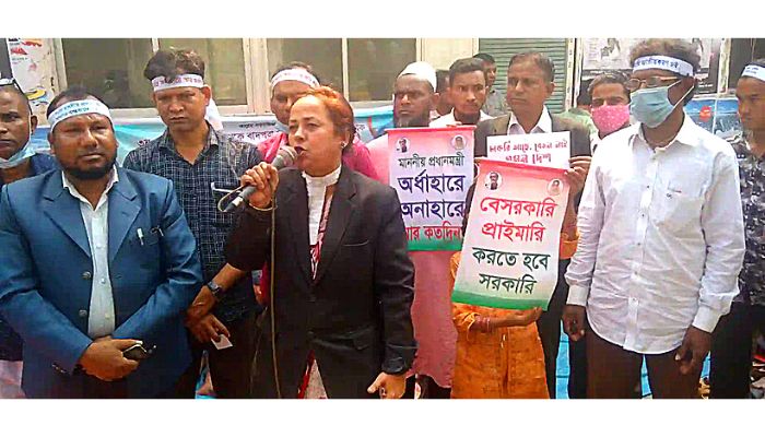 শাহনাজ পারভিন, সিনিয়র সহ সভাপতি বলেন - মাননীয় প্রধানমন্ত্রী আপনি যদি নিজস্ব অর্থায়নে পদ্মা সেতুর মত মেকা প্রকল্প নির্মান করতে পারেন, ১০ লক্ষ রোহিঙ্গাকে খাদ্য বস্ত্র বাসস্থান ও শিক্ষার সুব্যবস্থা করতে পারেন তাহলে নিশ্চয়ই এই ৪১৫৯ (চার হাজার একশত উনষাট)টি বেসারকারি প্রাথমিক বিদ্যালয় জাতীয়করন করতে পারবেন। একমাত্র আওয়ামী লীগ সরকারই প্রাথমিক শিক্ষাকে জাতীয়করণ করেন।