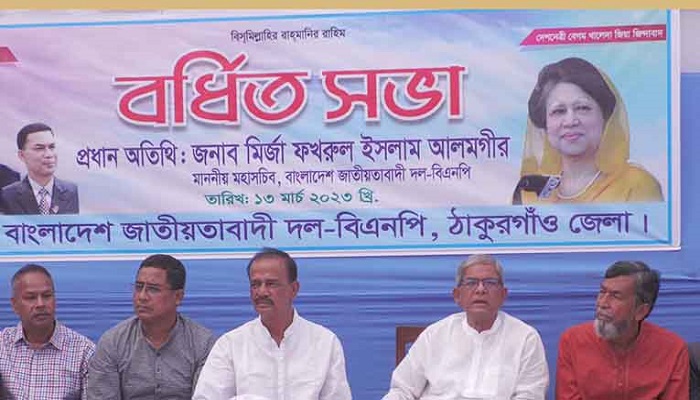 সোমবার (১৩ মার্চ) সকালে ঠাকুরগাঁও জেলা শহরের নিজ বাসভবনে জেলা বিএনপি আয়োজিত বর্ধিত সভায় প্রধান অতিথির বক্তব্যে এসব কথা বলেন ফখরুল। এ সময় জেলার শীর্ষ নেতাকর্মীরা উপস্থিত ছিলেন।