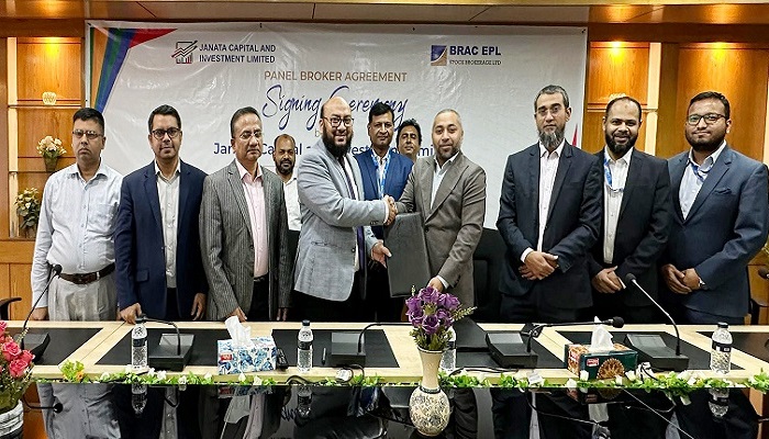 ব্র্যাক ইপিএল স্টক ব্রোকারেজ লিমিটেড ও জনতা ক্যাপিটাল এ্যান্ড ইনভেস্টমেন্ট লিমিটেডের মধ্যে প্যানেল ব্রোকার চুক্তি স্বাক্ষরিত হয়েছে।