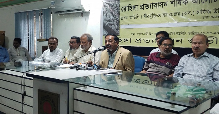সোমবার (২০ মার্চ) দুপুরে ঢাকা রিপোর্টার্স ইউনিটির সাগর রুনী মিলনায়তনে এক আলোচনা সভায় তিনি এসব কথা বলেন। রোহিঙ্গা প্রত্যাবাসন শীর্ষক আলোচনা সভার আয়োজন করে রোহিঙ্গা প্রত্যাবাসন জাতীয় কমিটি।