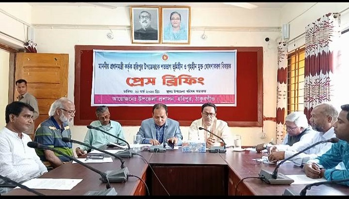 হরিপুর (ঠাকুরগাওঁ) প্রতিনিধি: ঠাকুরগাওঁ জেলা সদর হতে ৬০ কিঃ মিঃ দক্ষিনে হরিপুর উপজেলা । আজ সকাল ১১টায় উপজেলা হলরুমে এক প্রেস ব্রিফিংগে। বক্তব্য রাখেন উপজেলা নির্বাহী অফিসার এ কে এম শরিফুল হক, উপজেলা পরিষদ চেয়ারম্যান ও আ. লীগ সভাপতি মোঃ জিয়াউল হাসান (মুকুল), বীর মুক্তিযুদ্ধা কমান্ডার নগেন কুমার পাল।