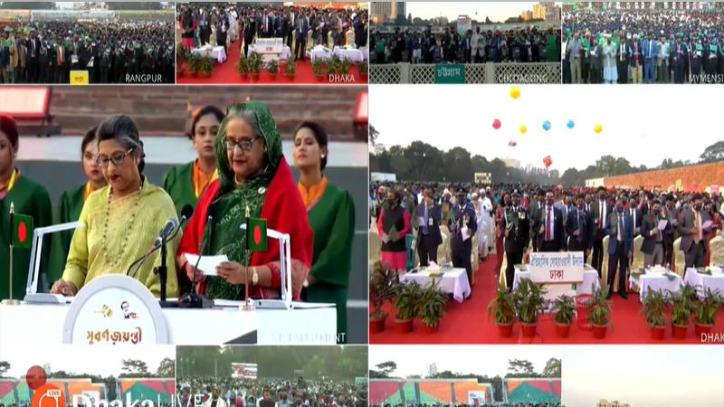 বাংলাদেশের স্বাধীনতার সুবর্ণজয়ন্তী ও মুজিববর্ষ উপলক্ষে দেশের মানুষকে শপথবাক্য পাঠ করালেন প্রধানমন্ত্রী শেখ হাসিনা।