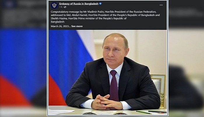 রোববার (২৬ মার্চ) ঢাকাস্থ রাশিয়ান দূতাবাস তাদের ভেরিফায়েড টুইট বার্তায় এ তথ্য জানায়।
