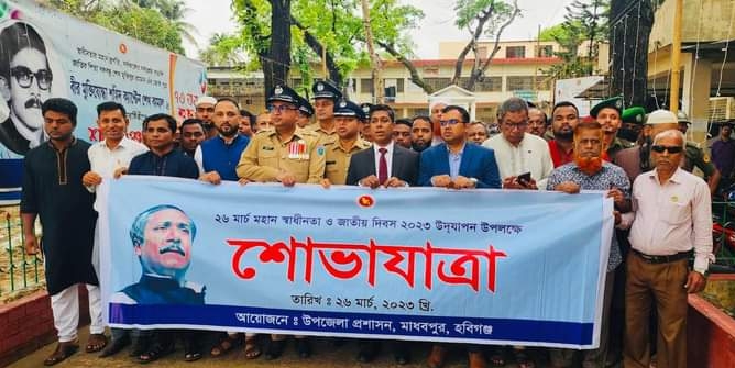 হবিগঞ্জ প্রতিনিধি: হবিগঞ্জের মাধবপুরে নানা কর্মসূচীর মধ্যে দিয়ে মহান স্বাধীনতা দিবস পালিত হয়েছে এ উপলক্ষে উপজেলা প্রশাসন বিস্তারিত কর্মসূচী পালন করে। সূর্যোদয়ের সাথে সাথে ৩১ বার তোপধ্বনির মাধ্যমে দিনের কর্মসূচীর সূচনা ঘটে সকল সরকারী আধা-সরকারী,স্বায়ত্তশাসিত প্রতিষ্ঠান এবং বেসরকারী ভবনে জাতীয় পতাকা উত্তোলণ করা হয়।