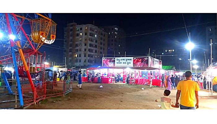 নিজস্ব প্রতিবেদকঃ হাইকোর্ট এবং সংশ্লিষ্ট দুই মন্ত্রণালয়ের নির্দেশনা অগ্রাহ্য করে সাভার সরকারি কলেজ মাঠে একজন অবাঙালির নেতৃত্বে শুরু করা একটি অবৈধ বাণিজ্য মেলা থেকে একটি চক্র প্রতিদিন লক্ষ লক্ষ টাকা হাতিয়ে নিচ্ছে। জেলা—উপজেলা প্রশাসন, স্থানীয় পুলিশ এবং সাভার সরকারি কলেজ কতৃর্পক্ষ এ ব্যাপারে নির্বিকার। অফিসিয়াল অনুমতির তোয়াক্কা না করে আয়োজিত ঐ মেলায় কোন রকম বাধা ছাড়াই গত ২৫ দিন ধরে জন প্রতি ১০ টাকা হারে প্রবেশ মূল্যে প্রতিদিন ২০—২৫ হাজার মানুষের সমাগম ঘটছে। শুক্র ও শনিবার উপচেপড়া মানুষের ভিড়ে তিল ধারণের ঠাঁই থাকছেনা।