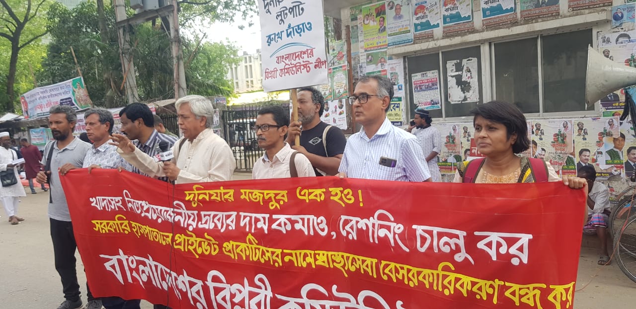 নিজস্ব প্রতিবেদকঃ আজ ৩০ মার্চ সকাল ১১ টায় জাতীয় প্রেসক্লাবের সামনে বাংলাদেশের বিপ্লবী কমিউনিস্ট লীগের উদ্যোগে খাদ্যসহ নিত্য প্রয়োজনীয় দ্রব্যের দাম কমানো, রেশনিং চালু, সরকারি হাসপাতালে প্রাইভেট প্র্যাকটিসের নামে স্বাস্থ্যসেবা বেসরকারিকরণ বন্ধ, সাংবাদিক শামসুজ্জামানের গুম হওয়া, সম্পাদক মতিয়ার রহমানের নামে ডিজিটাল মামলা ও র‌্যাব হেফাজতে মৃত্যুর ঘটনার প্রতিবাদে বিক্ষোভ সমাবেশ অনুষ্ঠিত হয়।