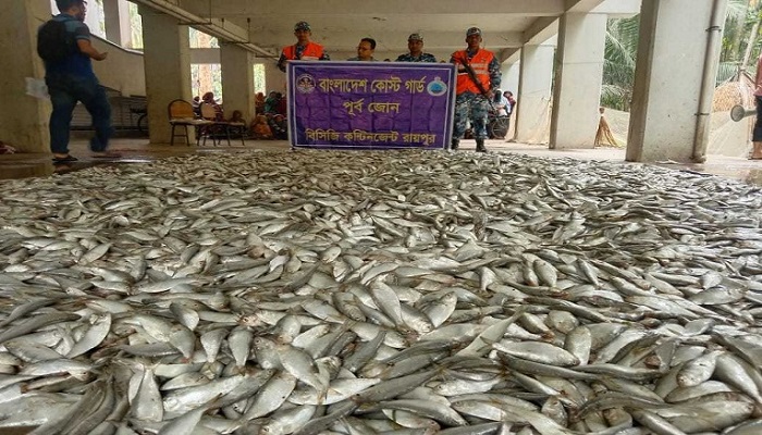 কোস্টগার্ডের কন্টিজেন কমান্ডার তৌহিদুল ইসলাম জানান, মার্চ-এপ্রিল দুমাস মেঘনায় মাছ ধরা নিষেধাজ্ঞা থাকায় প্রতিদিন দুইবার নদীতে অভিযানে যান তারা। এরই ধারাবাহিকতায় বৃহস্পতিবার ভোরে গোপন সংবাদের ভিত্তিতে রায়পুর উপজেলার উত্তর চরবংশী ইউনিয়নের মেঘনা নদী সংলগ্ন মেঘনা বাজার এলাকায় অভিযানে যান তারা। পরে তল্লাশি চালিয়ে ওই এলাকার একটি সুপারি বাগান থেকে সাড়ে ৩ হাজার কেজি জাটকা জব্দ করা হয়। এ সময় কোস্টগার্ডের উপস্থিতি টের পেয়ে জাটকা পাচারকারীরা ঘটনাস্থল থেকে পালিয়ে যায়। তাই কাউকে আটক করা সম্ভব হয়নি বলে জানান কোস্টগার্ডের এ কর্মকর্তা।