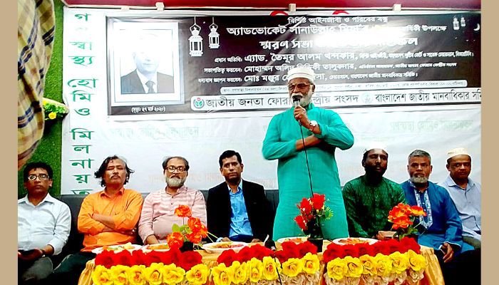 বৃহস্পতিবার (৩০ মার্চ) পুরানা পল্টনস্থ গণস্বাস্থ্য হোমিও মিলনায়তনে বিশিষ্ট আইনজীবী ও রাজনীতিক এডভোকেট সানাউল্লাহ মিয়ার ৩য় মৃত্যুবার্ষীকি উপলক্ষে জাতীয় জনতা ফেরাম ও জাতীয় মানবাধিকার সমিতি আয়োজিত স্মরণসভা ও দোয়া অনুষ্ঠানে তিনি এসব কথা বলেন।